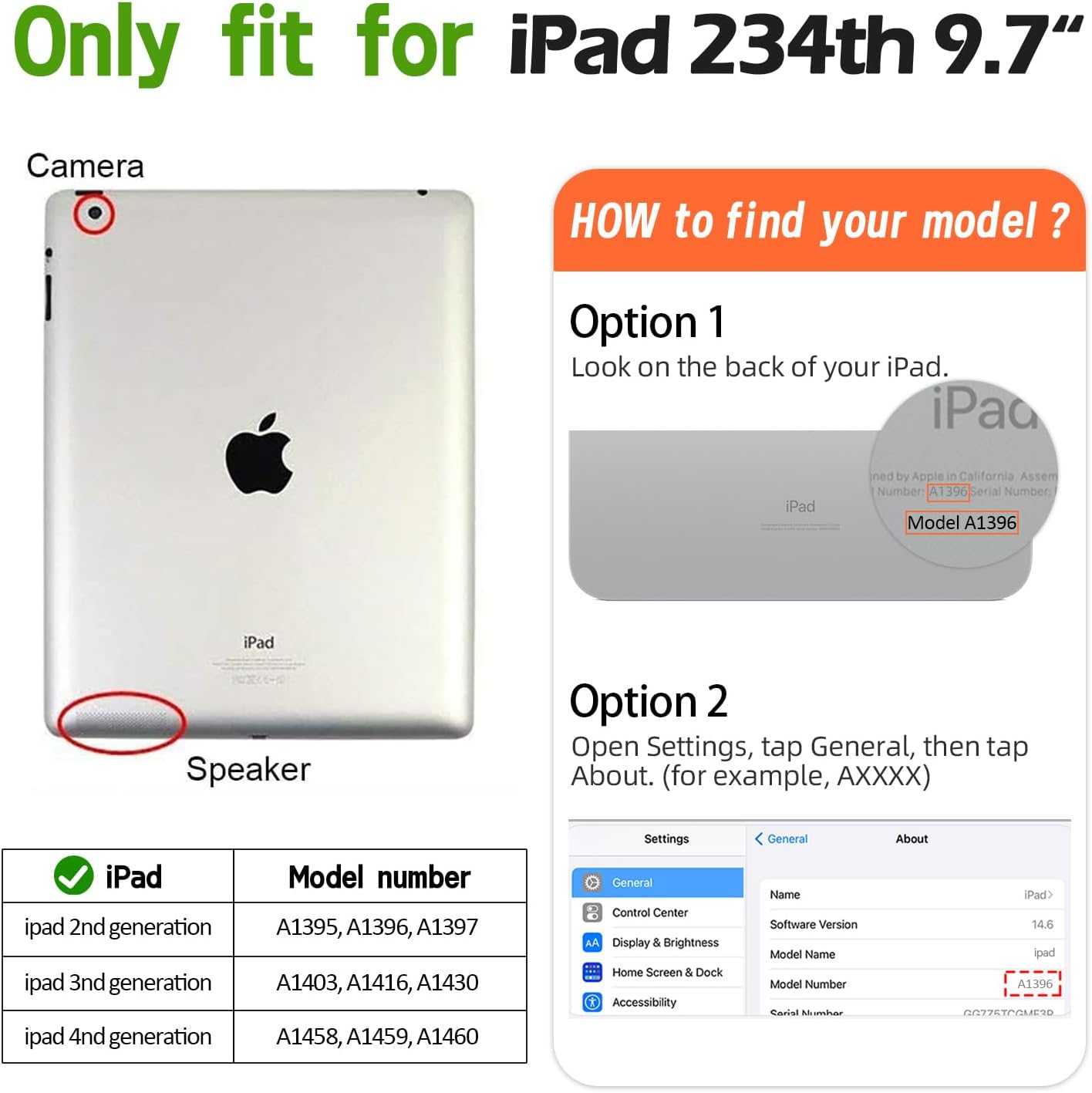 • Compatible with 2nd Generation ipad 2 Tablet (Released 2011, Models A1395, A1396, A1397), 3rd generation iPad 3 (Released 2012, Models A1403, A1416, A1430), 4th Generation iPad 4 (Released 2013, Models A1458, A1459, A1460). Not fit for other models.