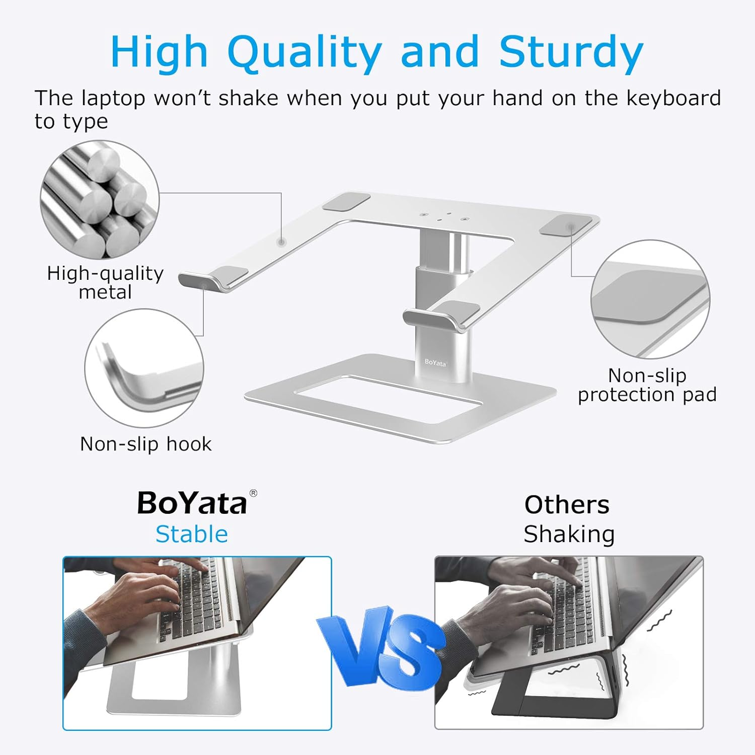 • 【BROAD COMPATIBILITY】The laptop stand fits a variety of laptops, such as MacBook/ Macbook Pro/ HP/ Lenovo/ Samsung laptops UP TO 17 INCHES, etc. BoYata 7*24 online support standing by. Kindly contact us if there are any quality issues. Welcome to Amazon store: BoYataDirect-US shopping again!