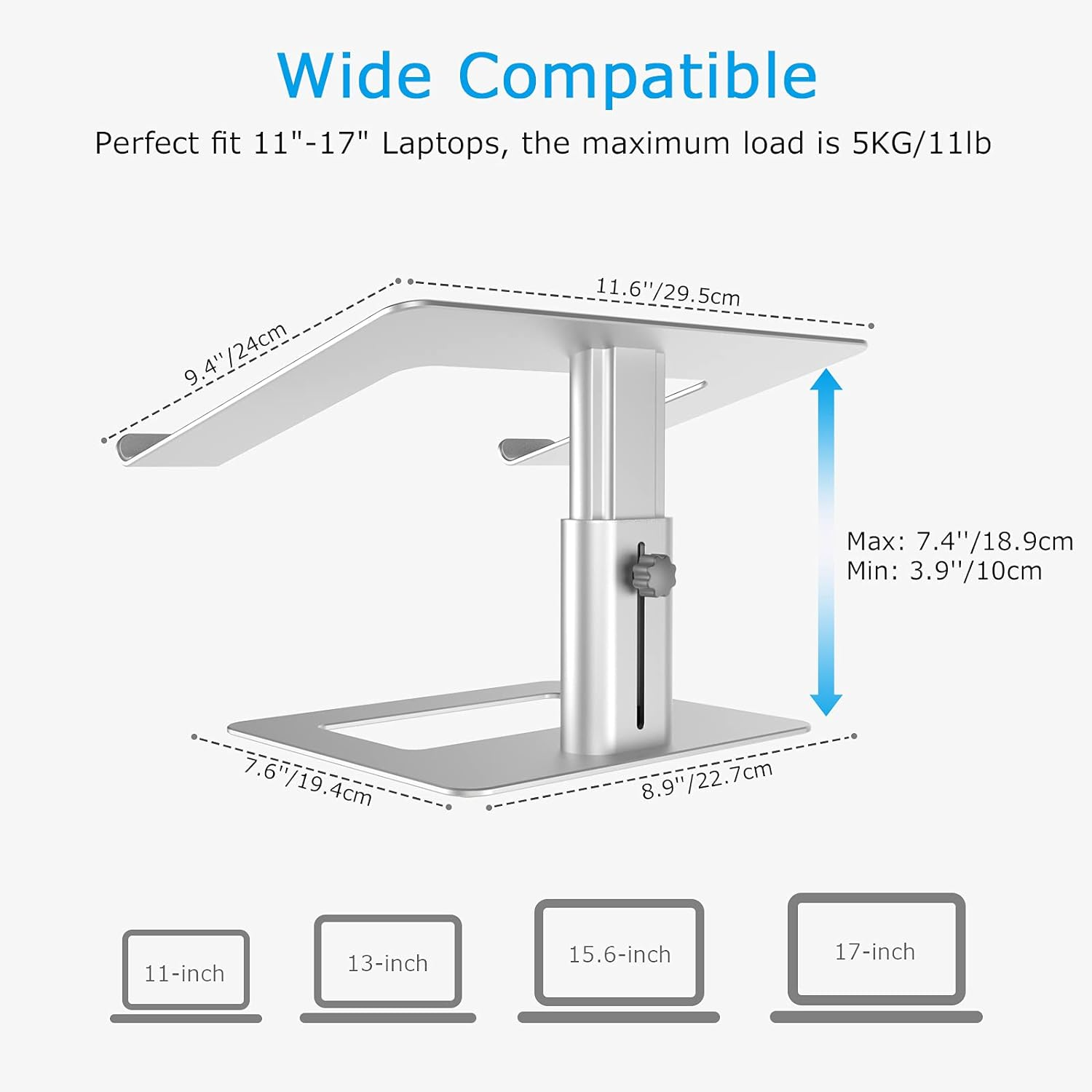 Laptop Stand, Ergonomic Aluminum Height Adjustable Computer Stand Laptop Riser Holder for Desk, Compatible with Macbook Pro/Air, Dell, Lenovo, HP, Samsung, More Laptops 11-17″