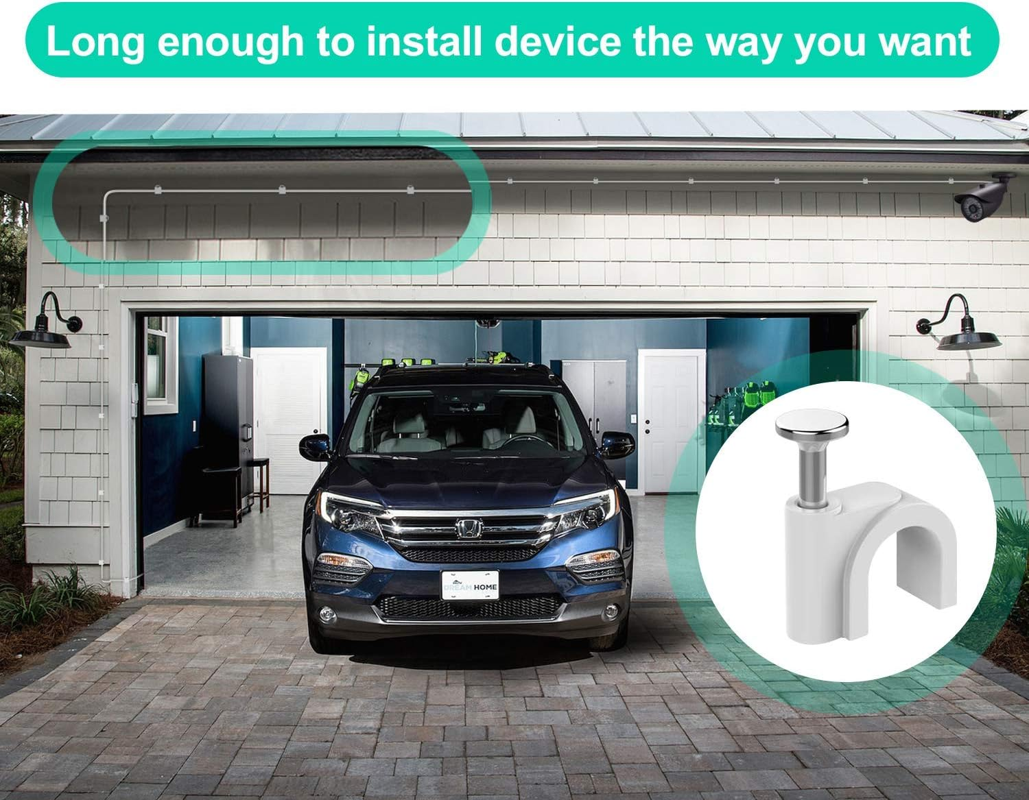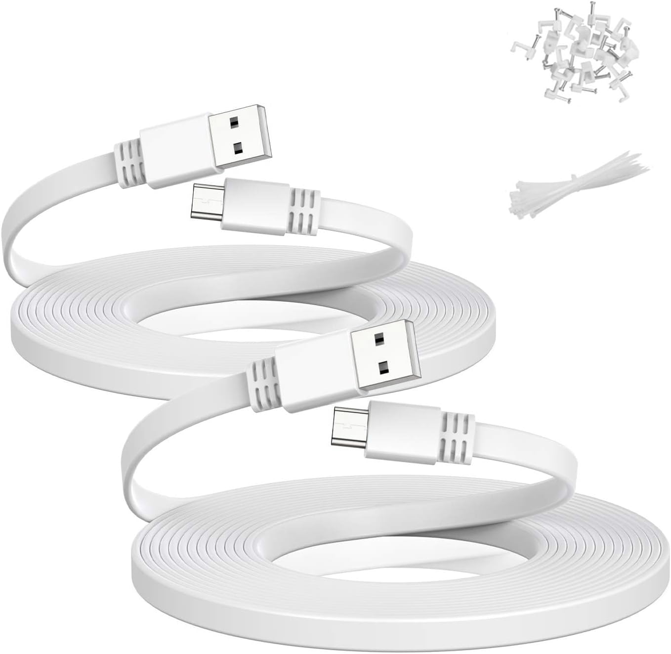 - (Easy to Install) The rich length option of this power cable means you can set up your camera exactly where you need to, without having to worry about the distance between the power outlet and your device. The enclosed nail-in clips and ties make it easy to arrange the cable alongside the wall and stop the cable from disrupting the decor of your property.