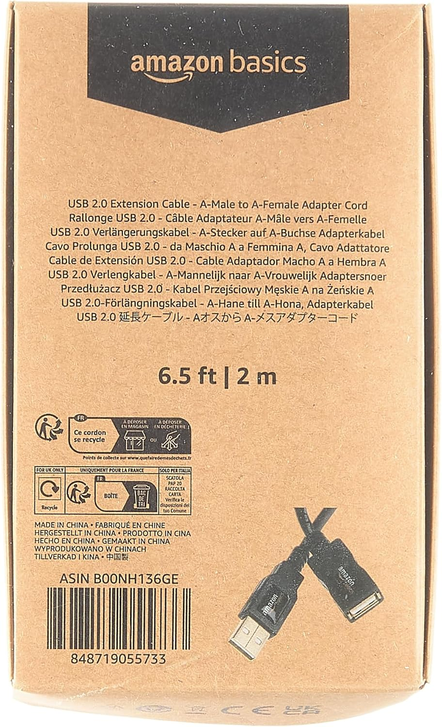 - IN THE BOX: (1) 6.5 foot USB 2.0 A-Male to A-Female high-speed extension cable